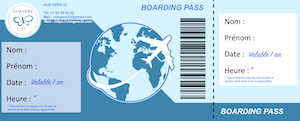 3 – télécharger le « boarding pass », inscrivez le nom et prénom du passager, transmettez-lui et demandez lui de prendre contact avec notre pilote-instructeur.