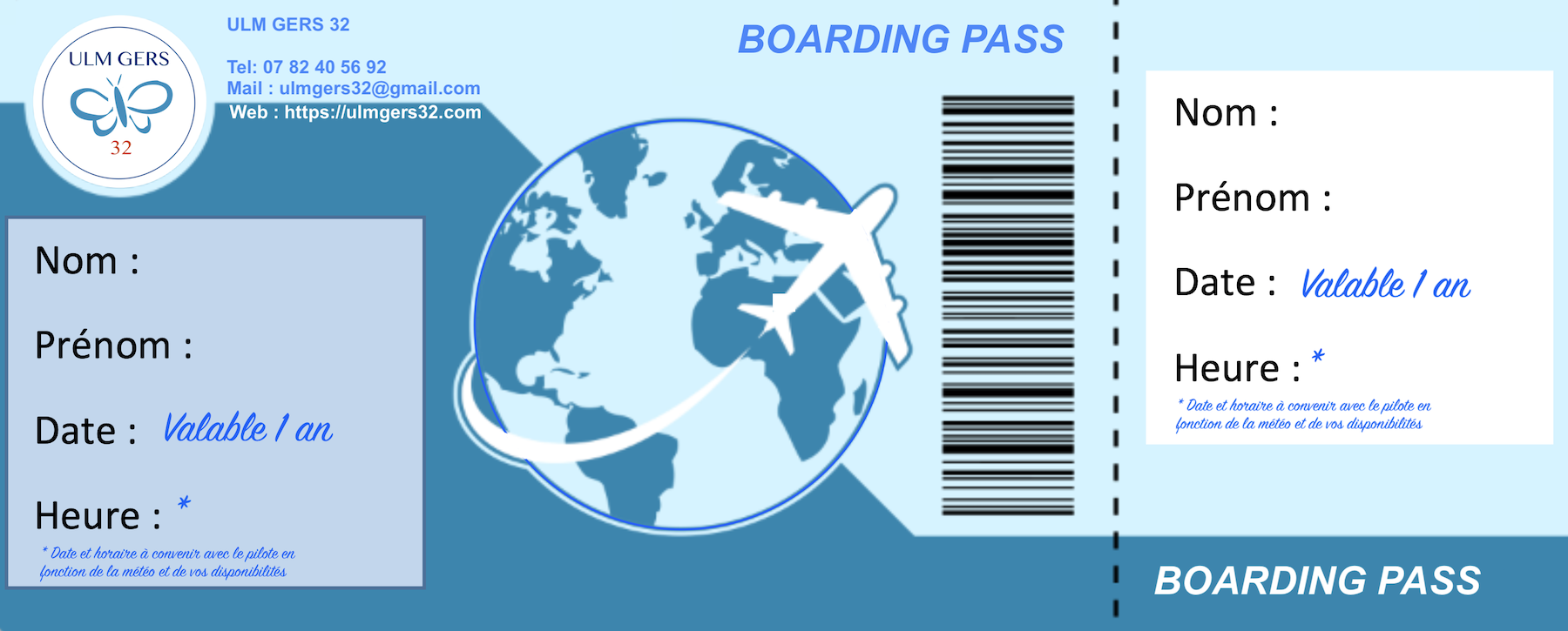 3 – télécharger le « boarding pass », inscrivez le nom et prénom du passager, transmettez-lui et demandez lui de prendre contact avec notre pilote-instructeur.